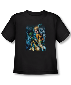 Aquaman is the king of all things aqua. He can breathe underwater, swim at tremendous speeds, and telepathically communicate with sea life. Being able to withstand ocean depths, he gets bonus points on land with his superhuman strength, enhanced senses, and nearly impenetrable skin. And although his courage and decisive nature have proven him a true heir to Atlantis’s throne, the continual conflict between land and sea makes him a citizen of both—and at home in neither.